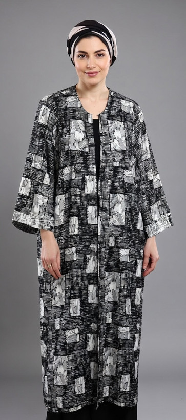 لباس ژاکارد نخ ترک زنانه مهسان مدل ۱۰۶۵ با قد بلند و فرم آزاد، انتخابی شیک و راحت برای استایلهای روزمره و نیمهرسمی ورسمی است.
