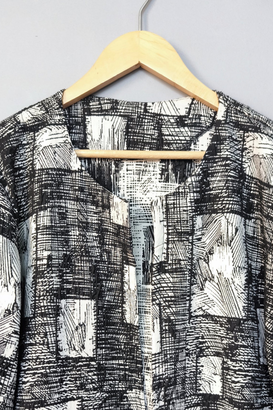 قد ۱۳۷ سانتیمتری این لباس، آن را برای استفاده بهعنوان لباس بلند، مانتویی یا استایل مینیمال روزانه کاملاً کاربردی کرد است.