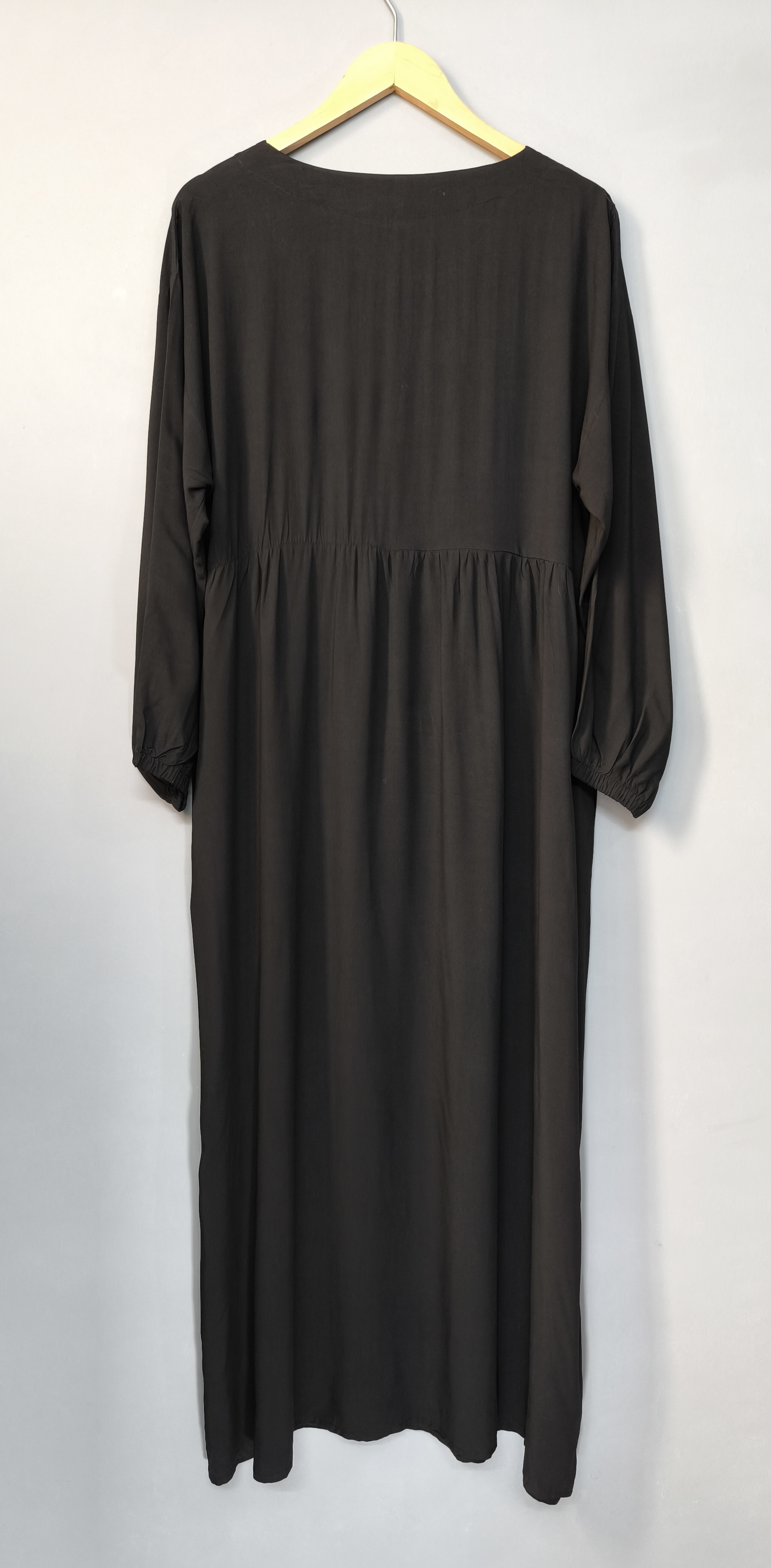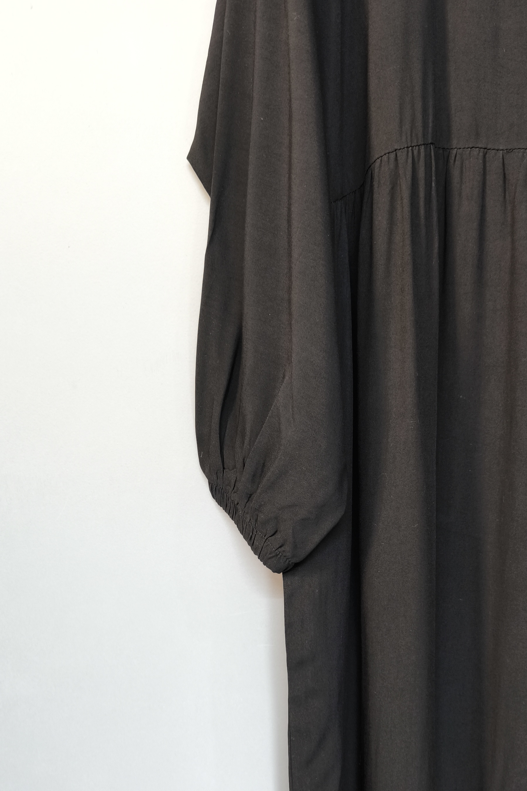 فرم ساحلی لباس به همراه آستینهای بلند ۶۵ سانتیمتری و کش در قسمت بالاتنه، باعث راحتی در تن و آزادی حرکت میشود و آن را برای استفاده روزمره، سفر و استایلهای تابستانی مناسب میکند.