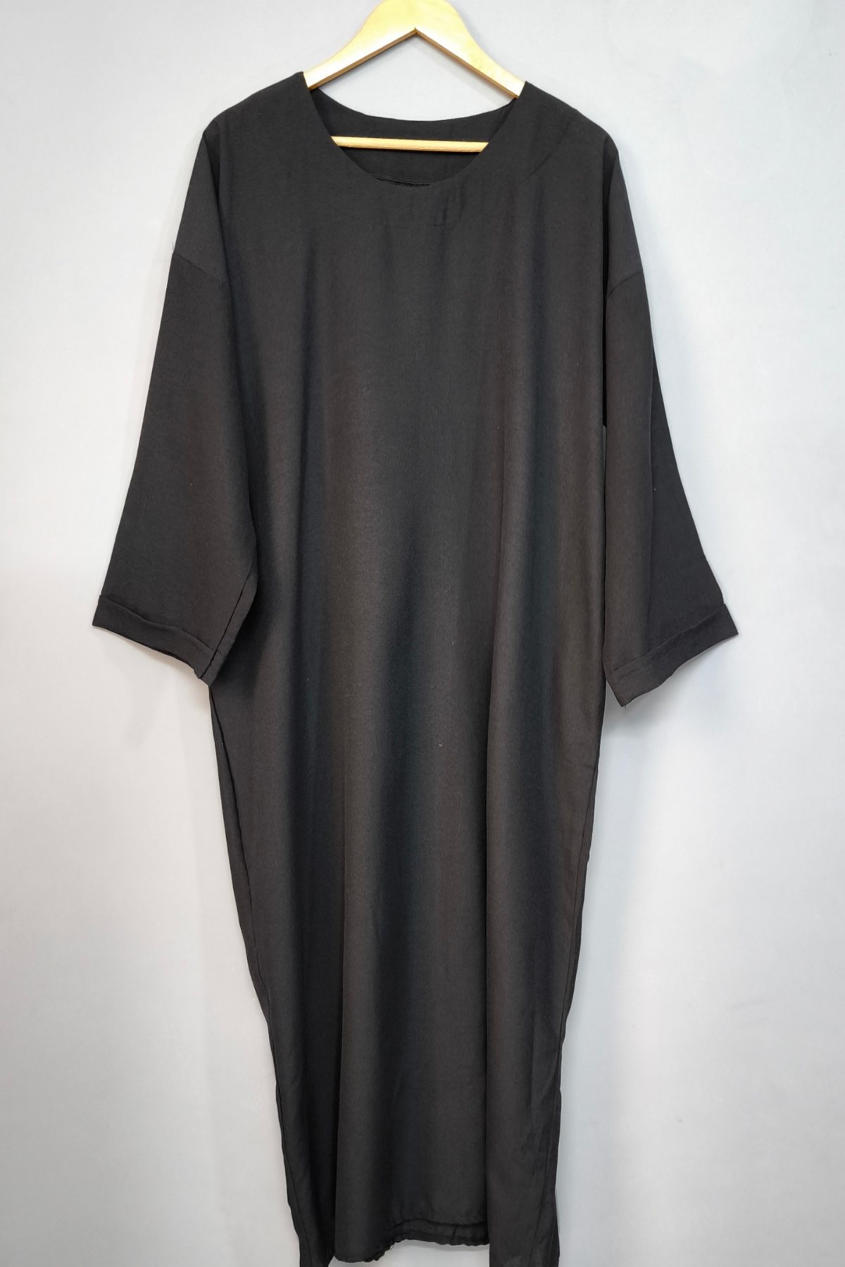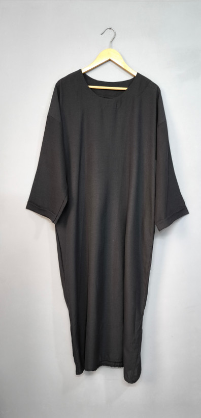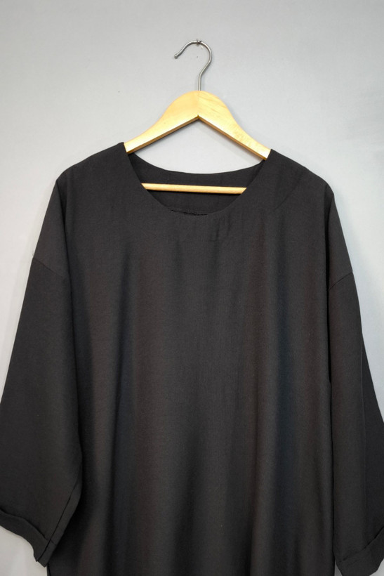 فرم بسیار آزاد با دور سینه، شکم و باسن یکسان، باعث میشود این کفتان روی بدن رها و خوشفرم بایستد و برای سایزهای مختلف کاملاً مناسب باشد.