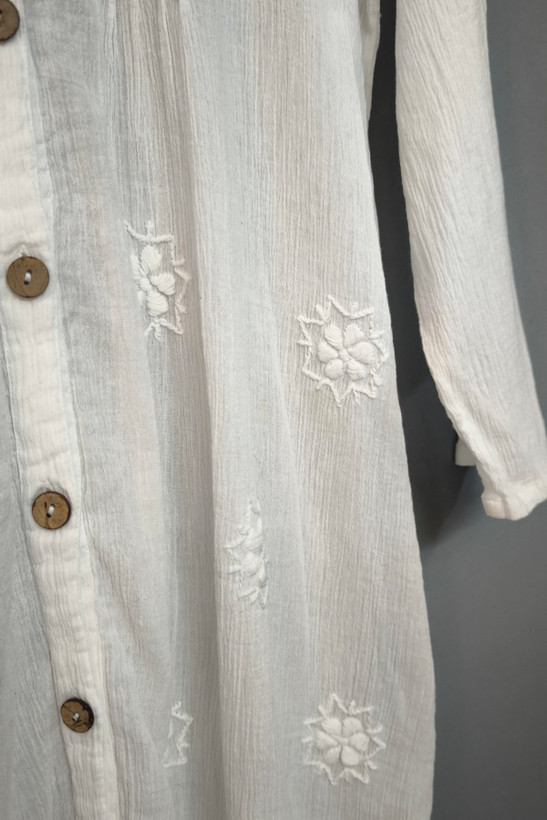 شومیز سفید نخ زنانه بلند، انتخابی شیک و کاربردی برای استایلهای مهمانی طور است. پارچه حریر سبک و لطیف، جلوهای ظریف و زنانه به لباس میدهد و بهراحتی با شلوار جین، پارچهای یا استایلهای مینیمال سفید ست میشود.