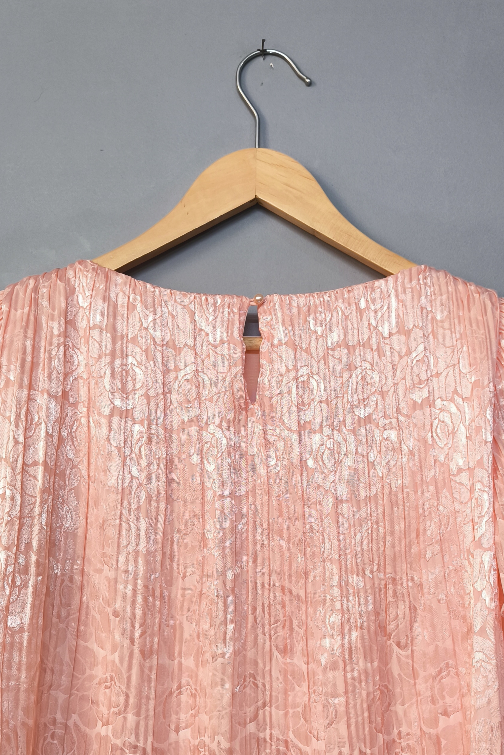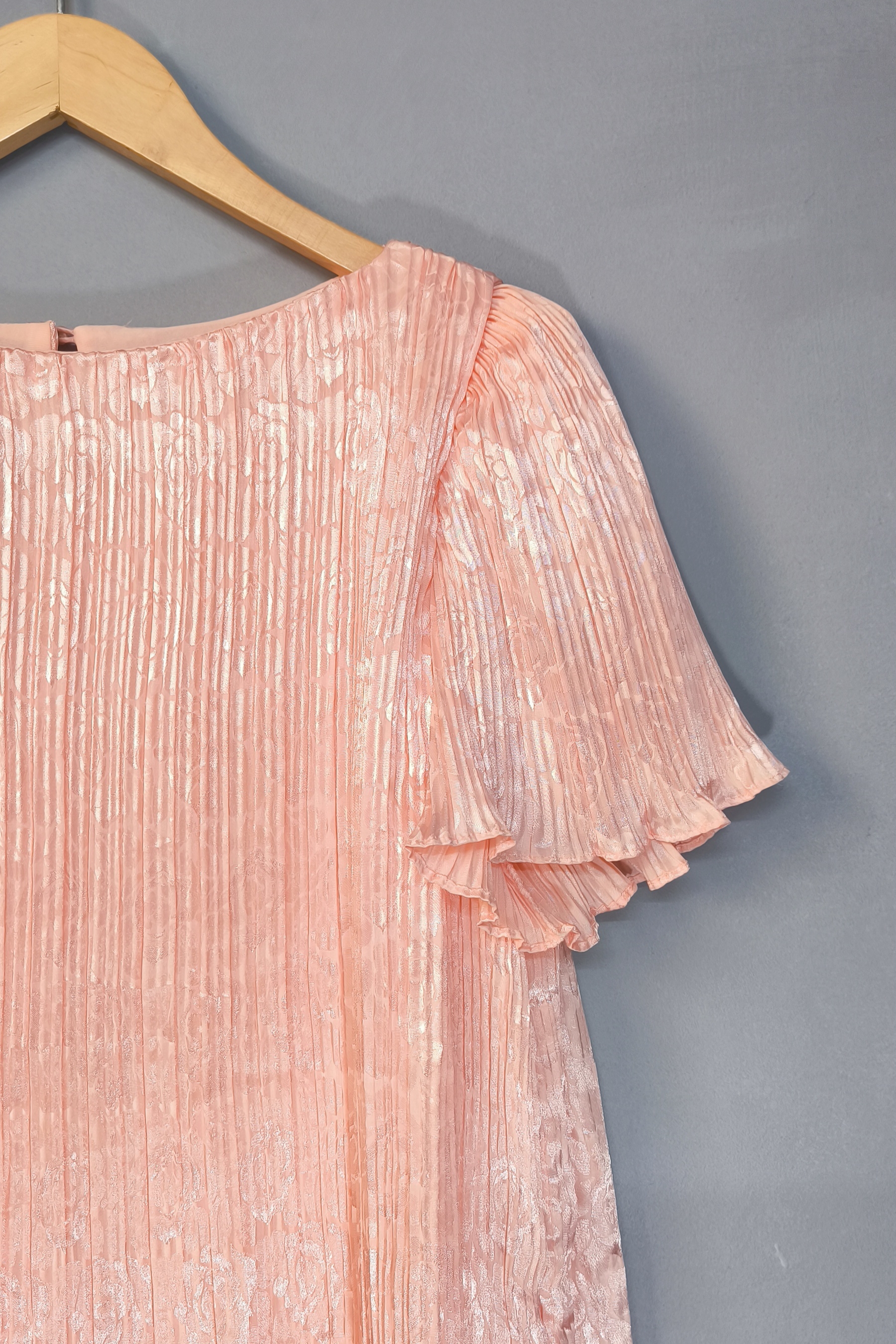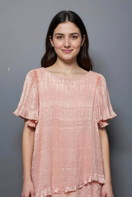نمای نزدیک پارچه ساتن پلیسه پیراهن مجلسی یاسمن
